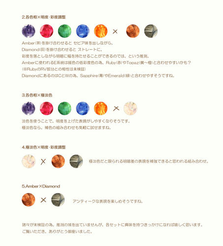E系統が暖色の濁色の為、とても相性が良かったです!彩度にも大きな差が無く、使いやすい印象。
